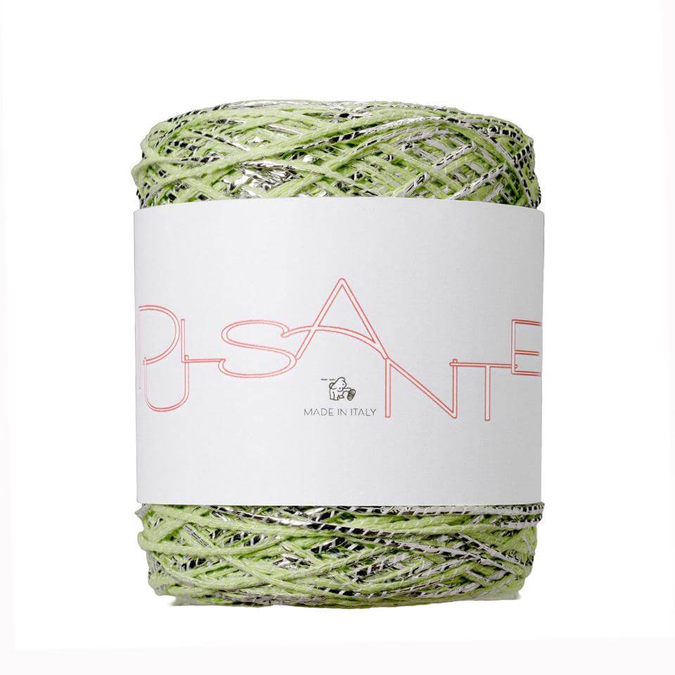 「脈打つ」「鼓動する」を意味するその名は、この糸の輝きがリズミカルに流れるような形状から名付けられました。適度な張りを持ち、ウェア・小物共にお楽しみいただけます。